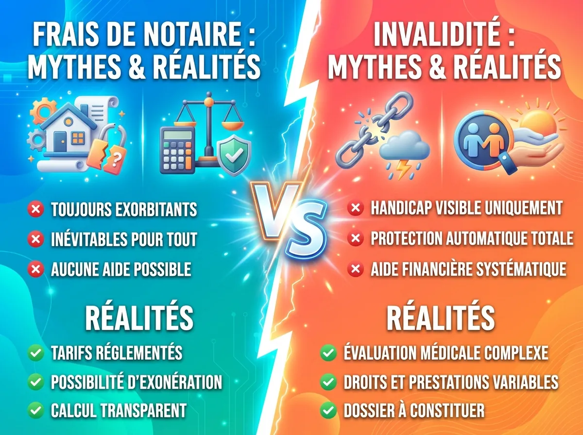 Soyons directs : non, être en situation d’invalidité ne donne pas droit à une réduction magique des frais de notaire lors d’un achat immobilier. C’est une idée reçue tenace, souvent alimentée par des informations confuses qui circulent en ligne. Cette croyance provient d’un amalgame avec un avantage fiscal bien réel, mais qui s’applique dans un contexte totalement différent : celui des successions et des donations. La déception peut être grande lorsque l’on découvre que la plus grosse partie des frais, les taxes, reste due. L’objectif de ce guide est de clarifier sans détour la situation. Nous allons déconstruire le mythe, vous expliquer où se trouve le véritable avantage lié à l’invalidité et vous orienter vers les leviers qui peuvent réellement alléger le coût de votre projet immobilier.